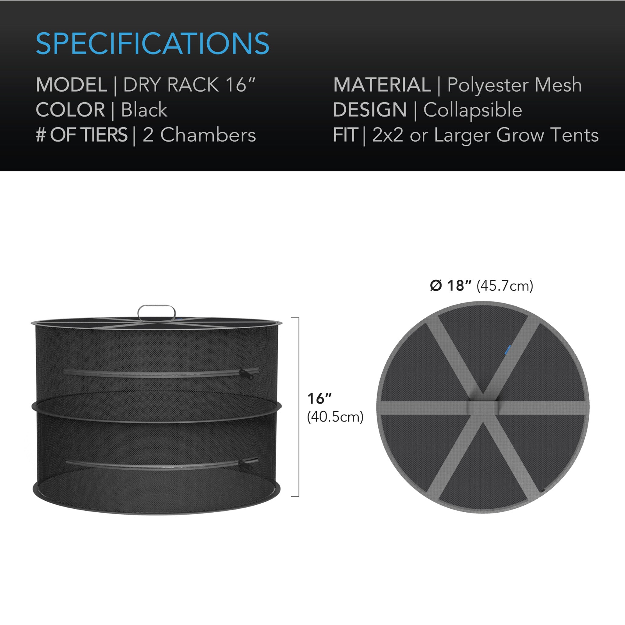 AC Infinity Hanging Herb Drying Rack, 18 in. Diameter, Two Tiers