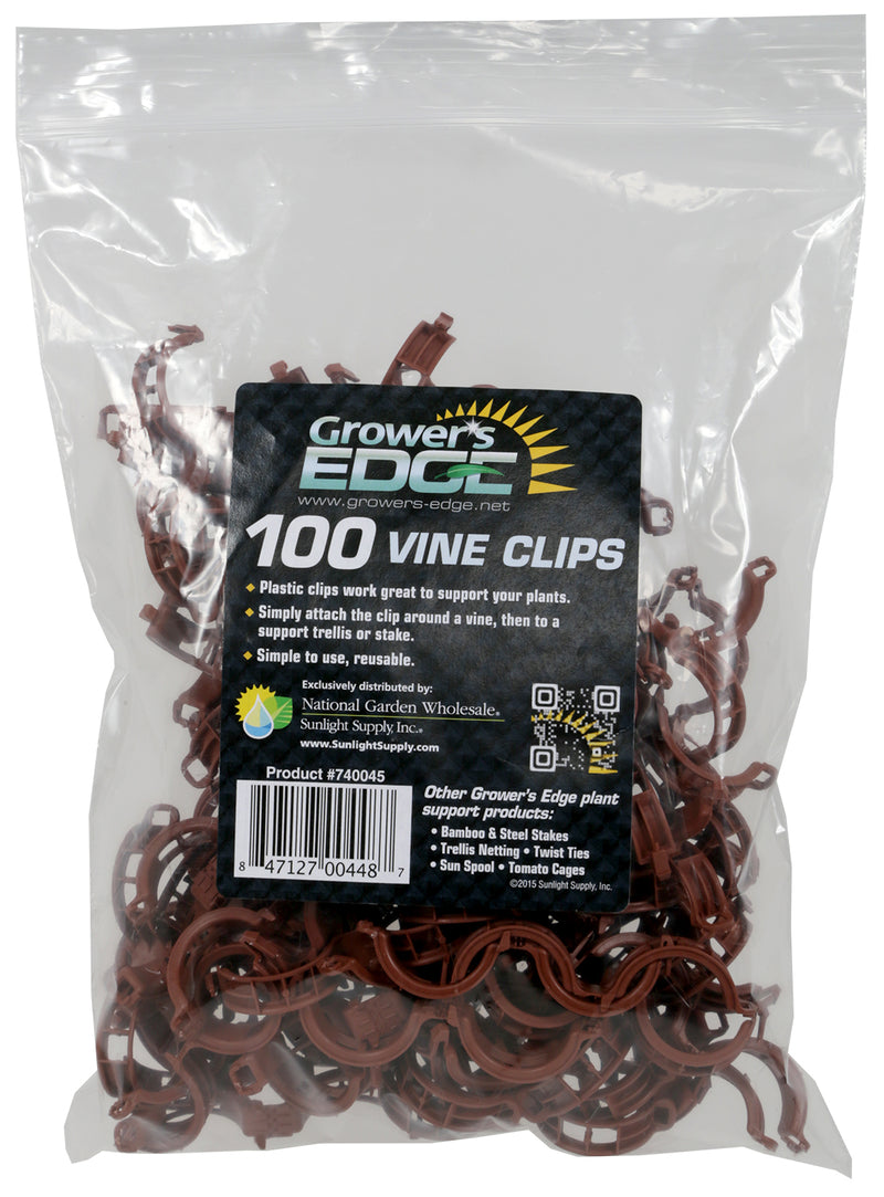 These plastic clips work great to support your plants while they grow. Simply attach the clip around the vine and then to a support.