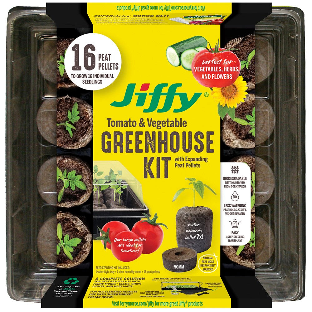 Jiffy® Seed Starting Tomato & Vegetable Greenhouse with SUPERthrive Plant Markers - 50mm - 16 Pellets